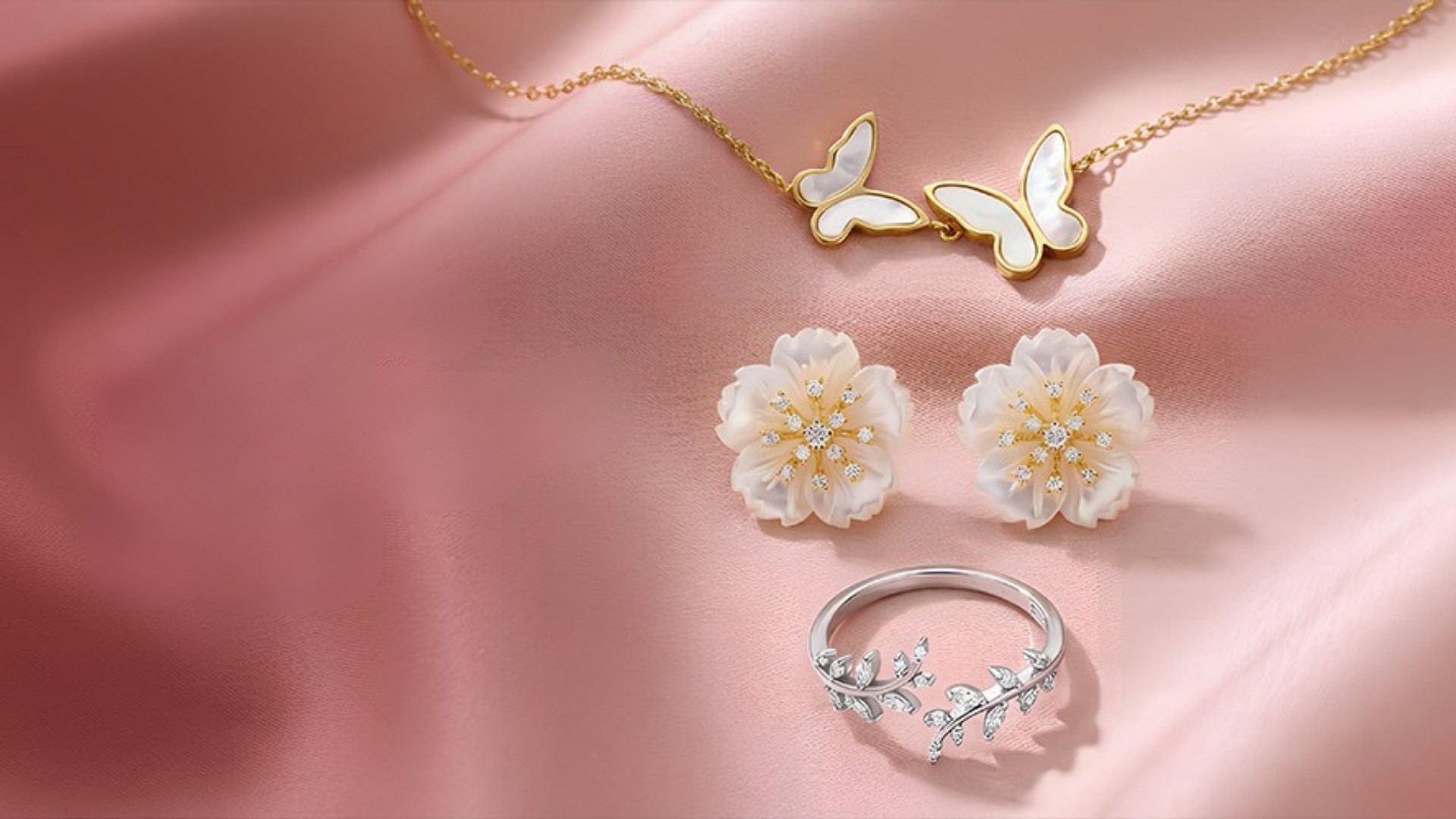 Aretes Dorados Rosa Nacarada Blanca
